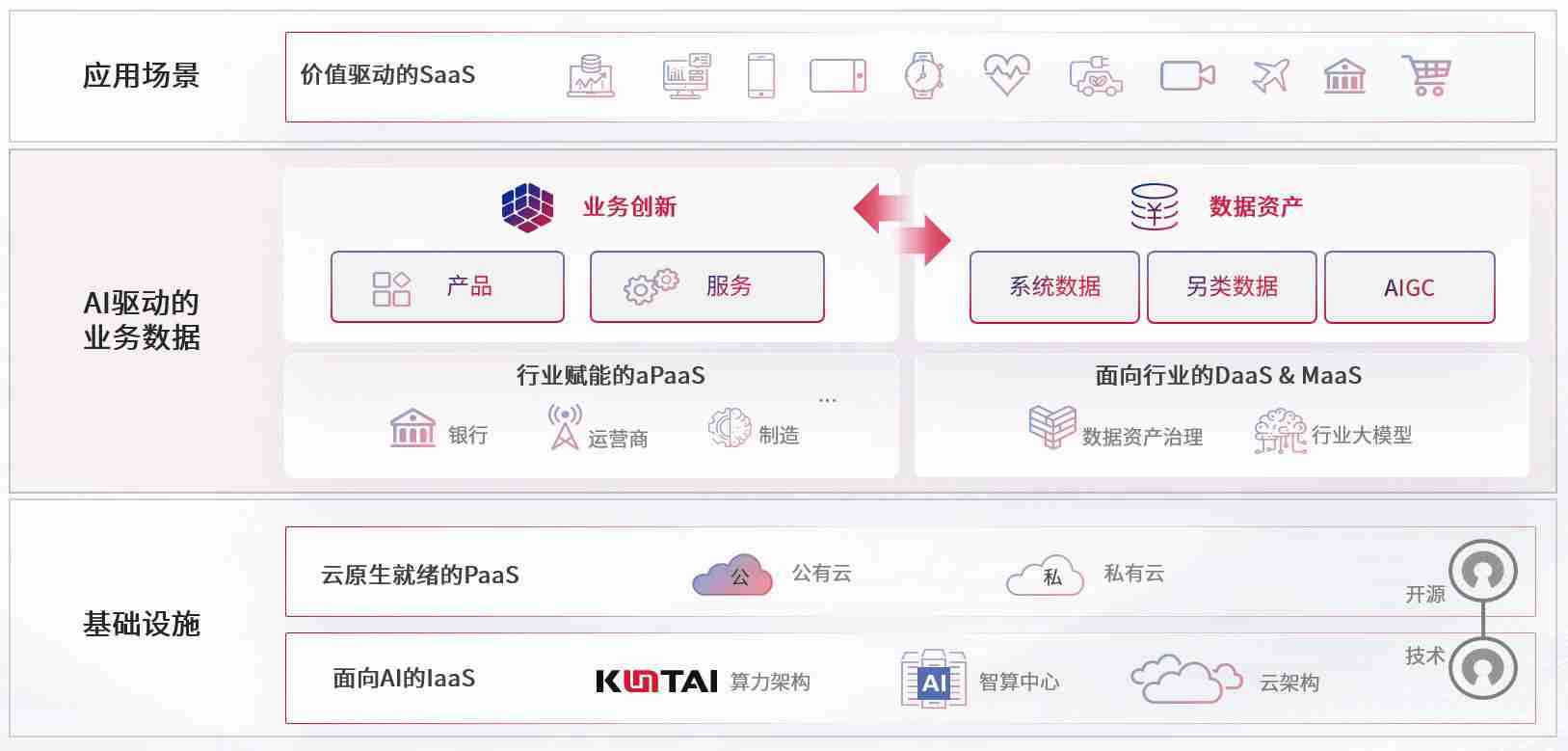 数字时代,,围绕企业数字化转型的关键要素,,,国际人数码开创性的提出数云融合战略和技术体系框架,,着力在云原生、、、、数字原生、、AI原生和信创产业上架构产品和服务能力,,,为处在不同数字化转型阶段的快消零售、、、、汽车、、金融、、、、医疗、、政企、、、、教育、、、、运营商等行业客户提供泛在的敏捷IT能力和融合的数据驱动能力,,,,构建跨界融合创新的数字业务场景和新业务模式,,,助力企业级客户建立面向未来的核心能力和竞争优势,,,,全面推动社会的数字化、、、智能化转型升级。。